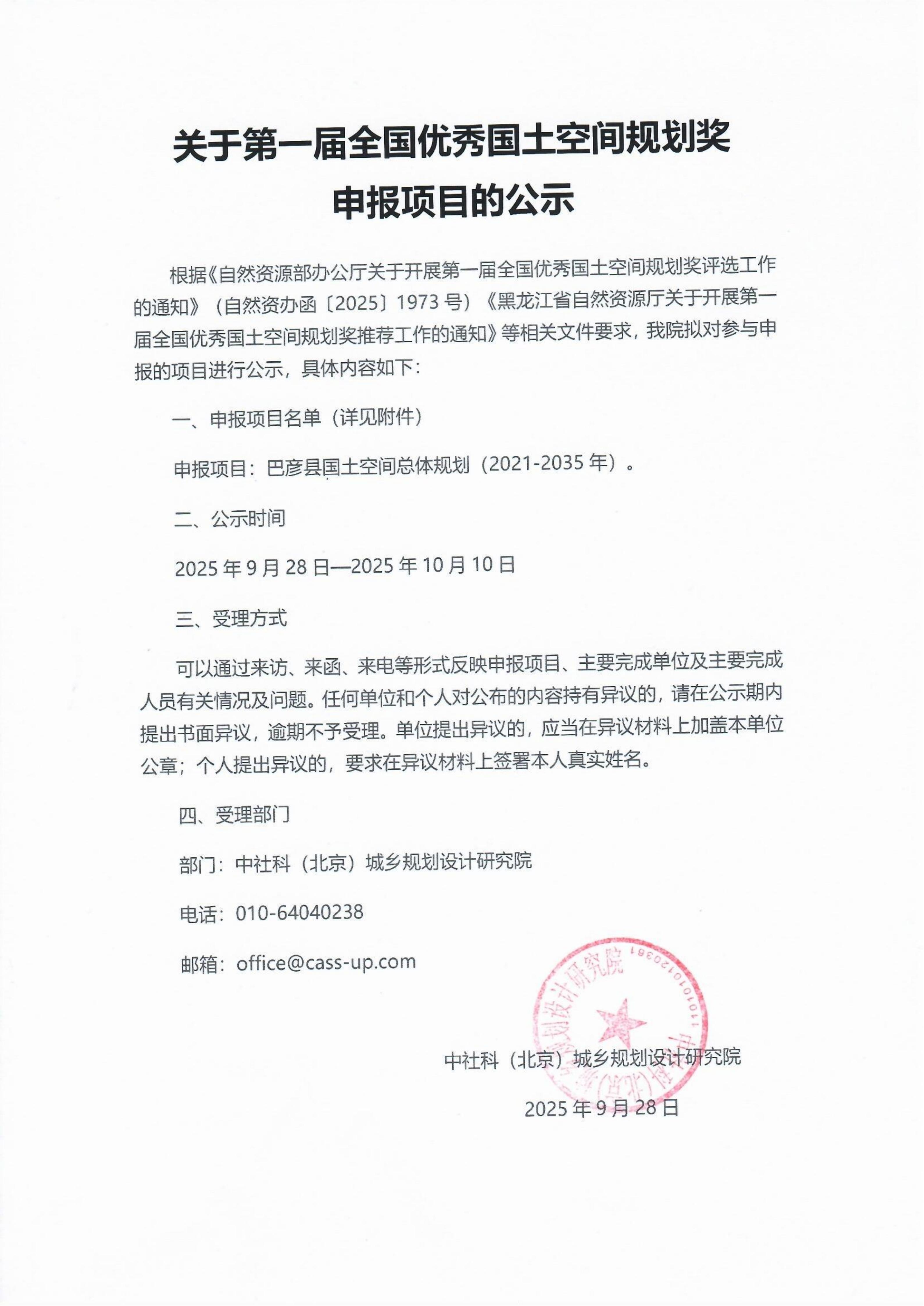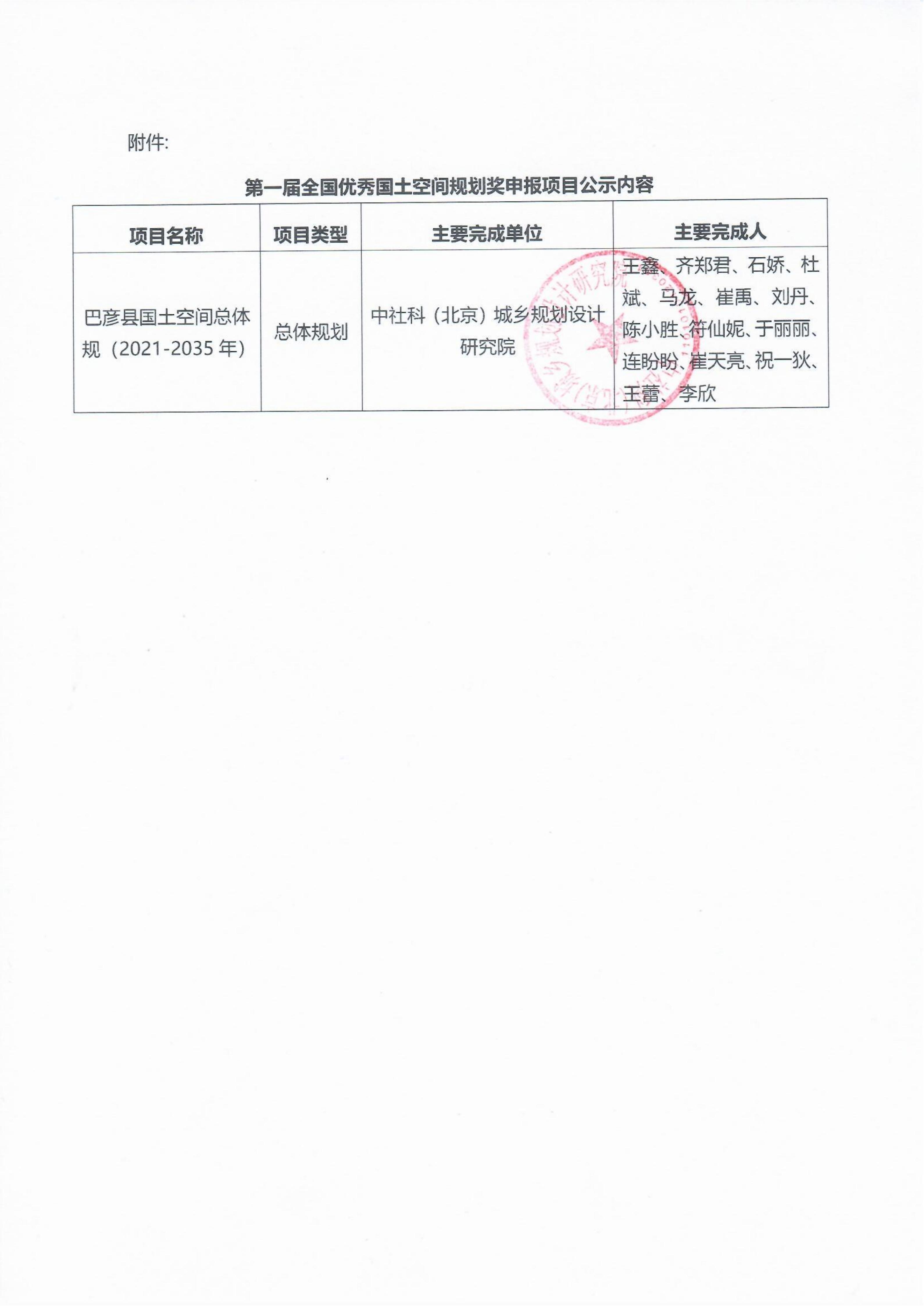 关于第一届全国优秀国土空间规划奖申报项目的公示